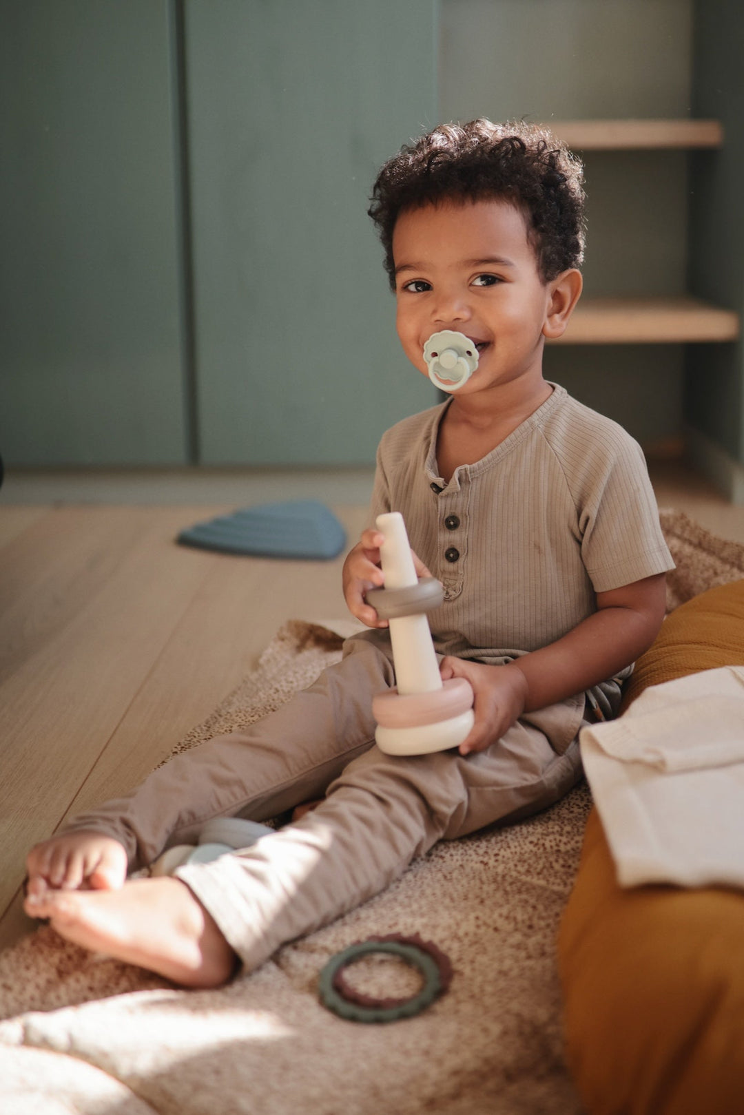 Con colores suaves y un diseño limpio, la marca Mushie se especializa en los productos básicos para tu bebé.
